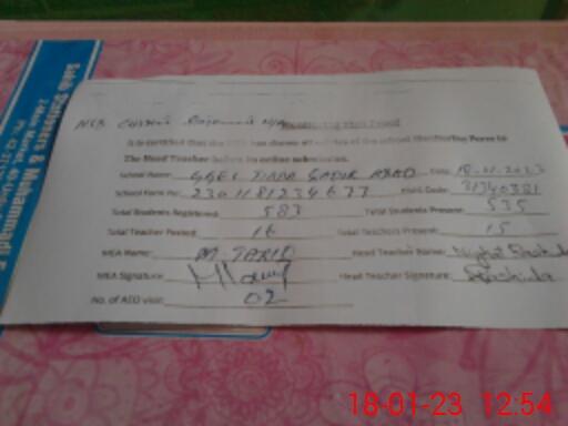 | Name: NI**** RA**** Designation: (School Headmaster's/Headmistress's) S.S.T.(SC) Phone/Cell Number: 03**** |