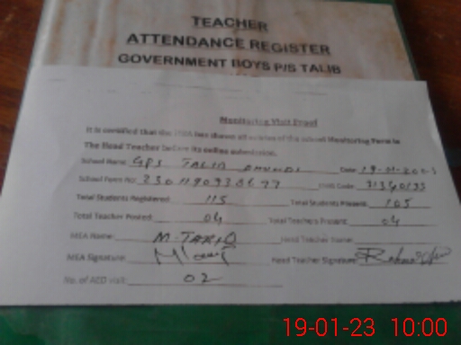 | EMIS Code: 31340133 | Name of School: GPS TALIB DHANDI | |||