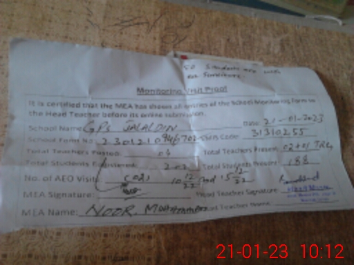 | EMIS Code: 31310255 | Name of School: GPS JALAL-UD-DIN | |||