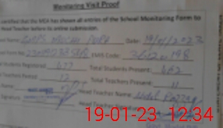 | Attendance Register | Head Teacher | MEA with School | Visit Proof |