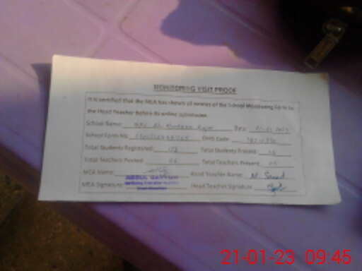| Attendance Register | Head Teacher | MEA with School | Visit Proof |