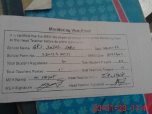 | EMIS Code: 31150400 | Name of School: GPS JAJJAL SARU | |||
