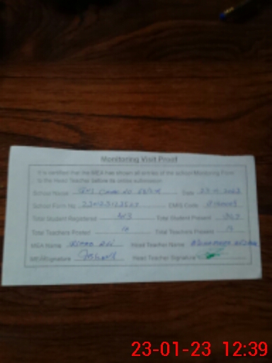 | Attendance Register | Head Teacher | MEA with School | Visit Proof |