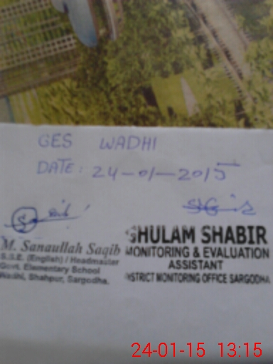 | District: SARGODHA | Tehsil: SHAHPUR | Markaz: WADHI - MALE | Level: Middle | |