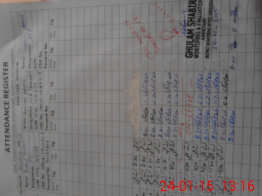 | CNIC | Full Name | Designation | R/C | Absence During Last Calender Month |