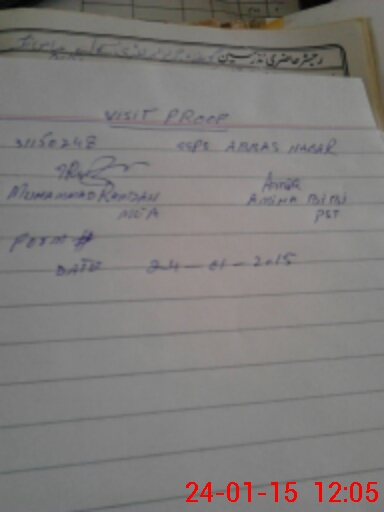 | School Visited by School Health & Nutrition Supervisor (No. of Visits) | Name1: | M Arshid | Name2: | ||