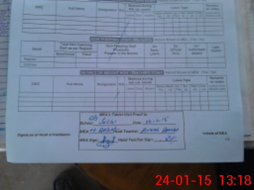 | Attendance Register | Head Teacher | MEA with School | Visit Proof |