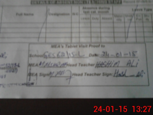 | Attendance Register | Head Teacher | MEA with School | Visit Proof |