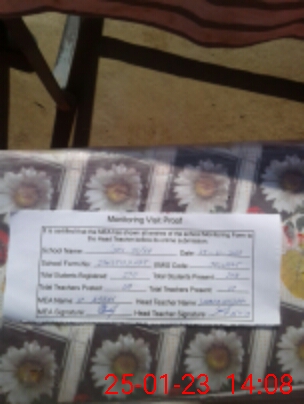 | Attendance Register | Head Teacher | MEA with School | Visit Proof |