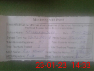 | Attendance Register | Head Teacher | MEA with School | Visit Proof |