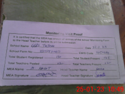 | Attendance Register | Head Teacher | MEA with School | Visit Proof |