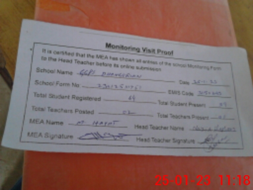 | Certified that this School was Inspected by the Undersigned MEA/DMO Today and the Information Stated Above is as Per Record. | |||||