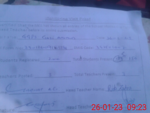 | EMIS Code: 33251007 | Name of School: GGPS GHAZI ABAD | |||