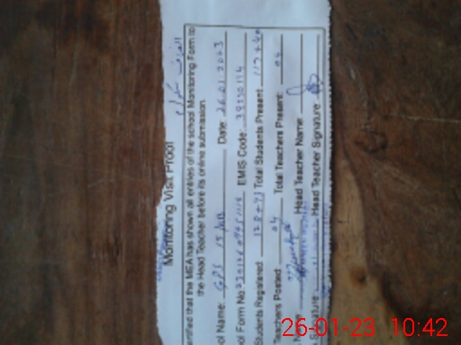 | Attendance Register | Head Teacher | MEA with School | Visit Proof |