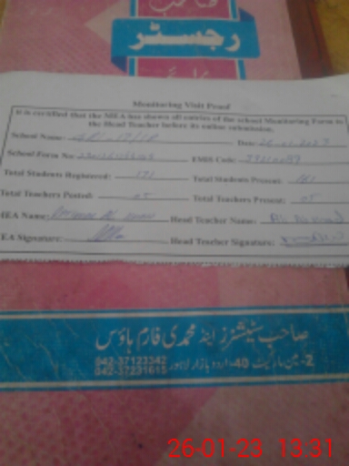 | Attendance Register | Head Teacher | MEA with School | Visit Proof |