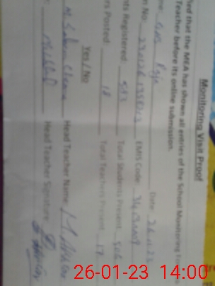 | Certified that this School was Inspected by the Undersigned MEA/DMO Today and the Information Stated Above is as Per Record. | |||||