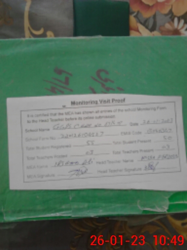 | Certified that this School was Inspected by the Undersigned MEA/DMO Today and the Information Stated Above is as Per Record. | |||||