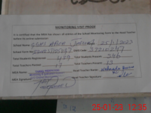 | EMIS Code: 37210247 | Name of School: GGHS APWA JHELUM | |||