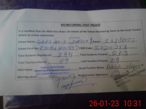 | EMIS Code: 37210256 | Name of School: GGPS NO. 3 JEHLUM | |||