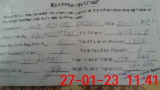 | Total no. of Classrooms: 3 No. of Classrooms Used for Teaching: 3 No. of Classrooms Storing Old Furniture, FTBs, etc: 0Comments if Any: 0 |
