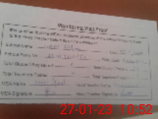 | Attendance Register | Head Teacher | MEA with School | Visit Proof |