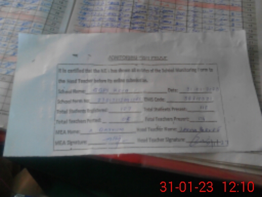 | Attendance Register | Head Teacher | MEA with School | Visit Proof |