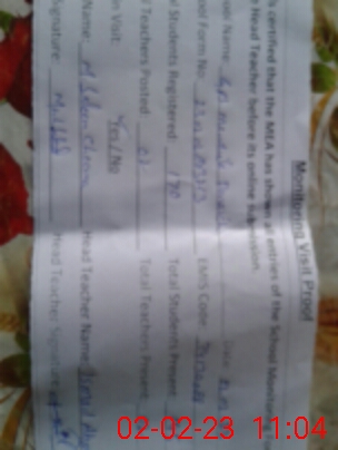 | Certified that this School was Inspected by the Undersigned MEA/DMO Today and the Information Stated Above is as Per Record. | |||||