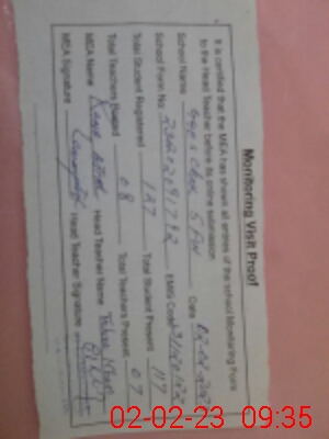 | Attendance Register | Head Teacher | MEA with School | Visit Proof |