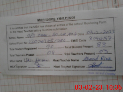 | EMIS Code: 31140147 | Name of School: GPS CHAK NO 50/4-R NO 2 | |||