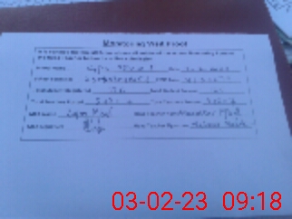 | Monitoring Date: 03-02-2023 | Start Time: 03-02-2023 09:05 AM | End Time: 03-02-2023 09:19 AM | Name of MEA: Za**** Iq**** BN**** | |