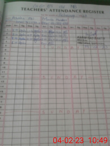 | Name: NA**** GH**** Designation: (School Headmaster's/Headmistress's) PST (SCI,MATH) Phone/Cell Number: 03**** |