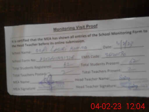 | Attendance Register | Head Teacher | MEA with School | Visit Proof |
