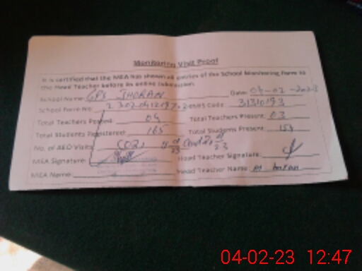 | Attendance Register | Head Teacher | MEA with School | Visit Proof |