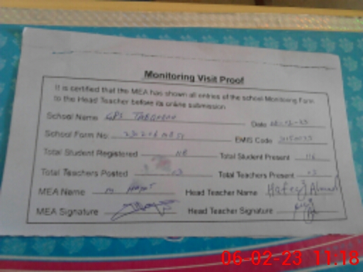 | EMIS Code: 31150073 | Name of School: GPS TABQRAH | |||