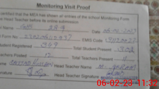| EMIS Code: 31120022 | Name of School: GHS CHAK NO. 28/G | |||