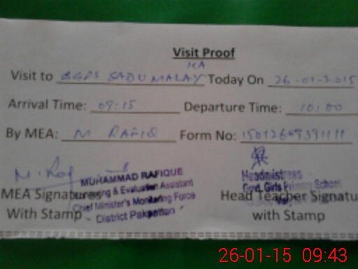 | Attendance Register | Head Teacher | MEA with School | Visit Proof |