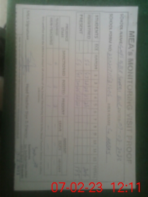 | Attendance Register | Head Teacher | MEA with School | Visit Proof |