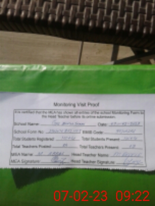 | Attendance Register | Head Teacher | MEA with School | Visit Proof |