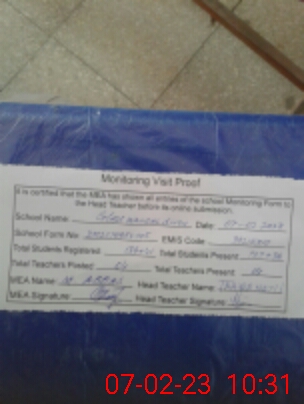 | Certified that this School was Inspected by the Undersigned MEA/DMO Today and the Information Stated Above is as Per Record. | |||||
