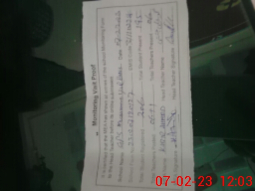 | Attendance Register | Head Teacher | MEA with School | Visit Proof |