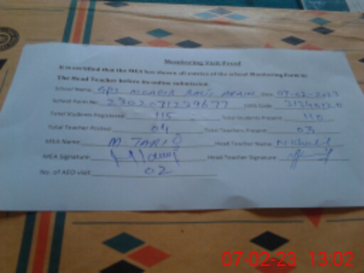 | EMIS Code: 31340120 | Name of School: GPS MOADIB BASTI ARAIAN | |||