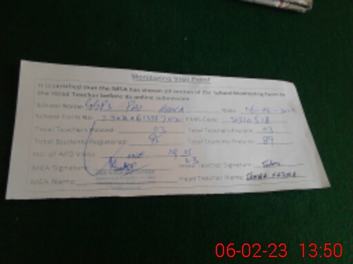 | Attendance Register | Head Teacher | MEA with School | Visit Proof |