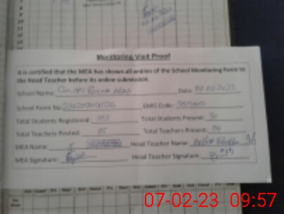 | Attendance Register | Head Teacher | MEA with School | Visit Proof |