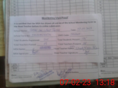 | Attendance Register | Head Teacher | MEA with School | Visit Proof |