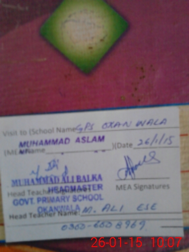 | EMIS Code: 38450290 | Name of School: GPS OKAN WALA | |||