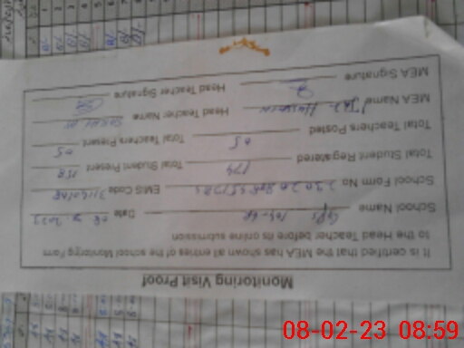 | Attendance Register | Head Teacher | MEA with School | Visit Proof |