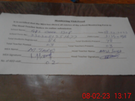 | Attendance Register | Head Teacher | MEA with School | Visit Proof |