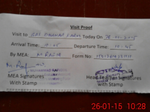 | Attendance Register | Head Teacher | MEA with School | Visit Proof |