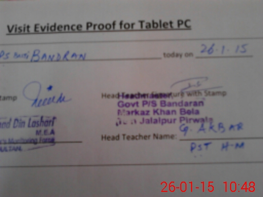 | Attendance Register | Head Teacher | MEA with School | Visit Proof |