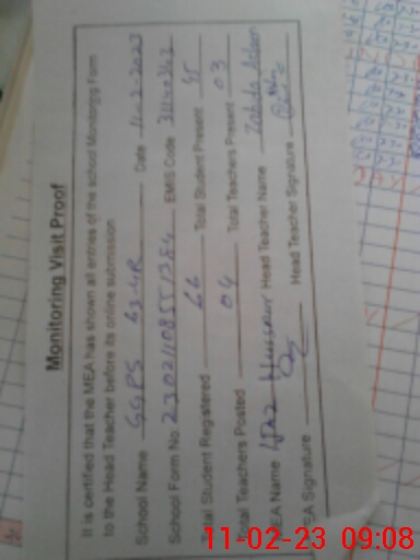 | Certified that this School was Inspected by the Undersigned MEA/DMO Today and the Information Stated Above is as Per Record. | |||||